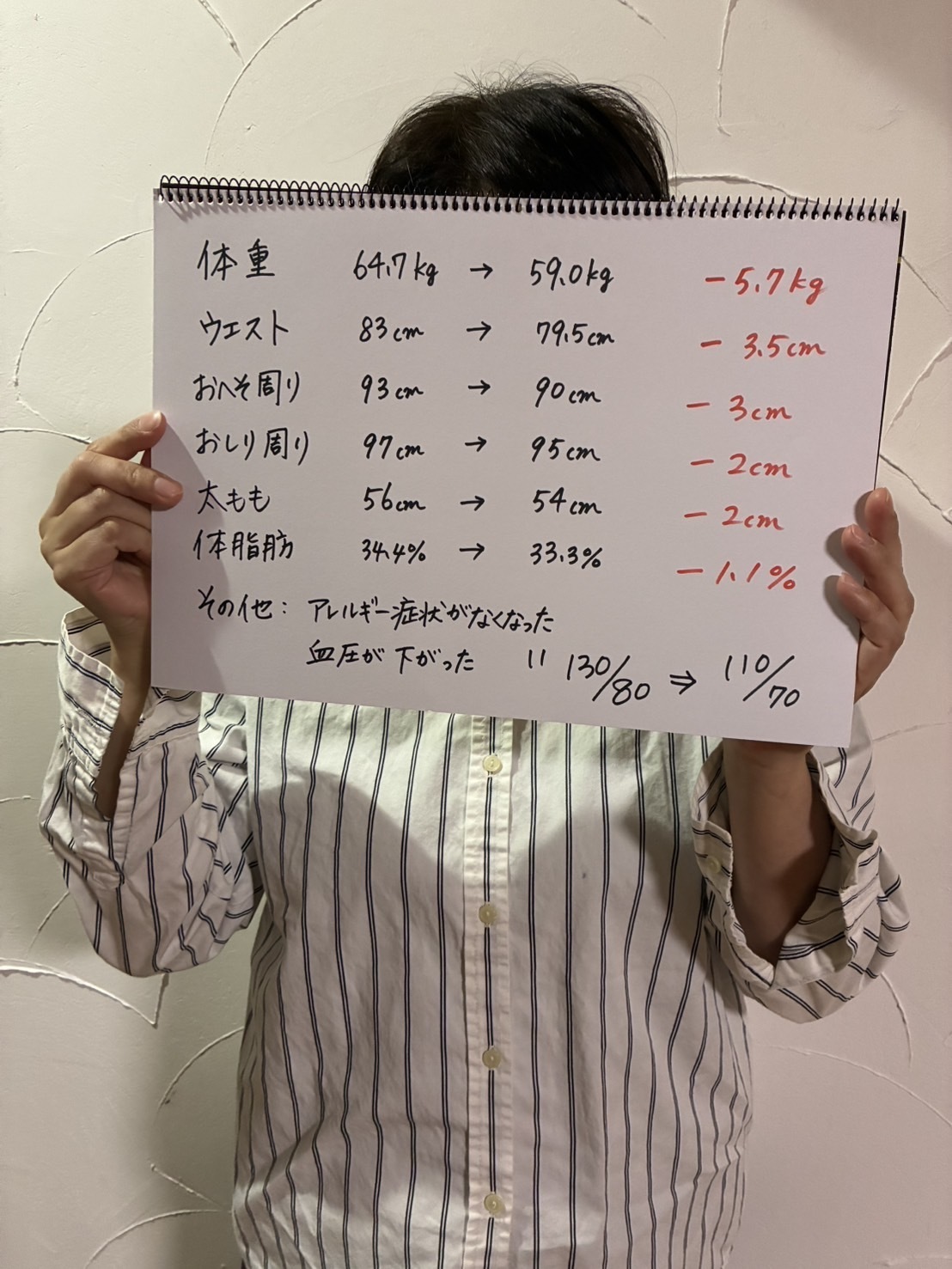 終わった後は身体も疲れにくくなるし、動きやすい!そしてその他にもアレルギー症状も軽くなったり血圧も下がったりといい事づくしでした。