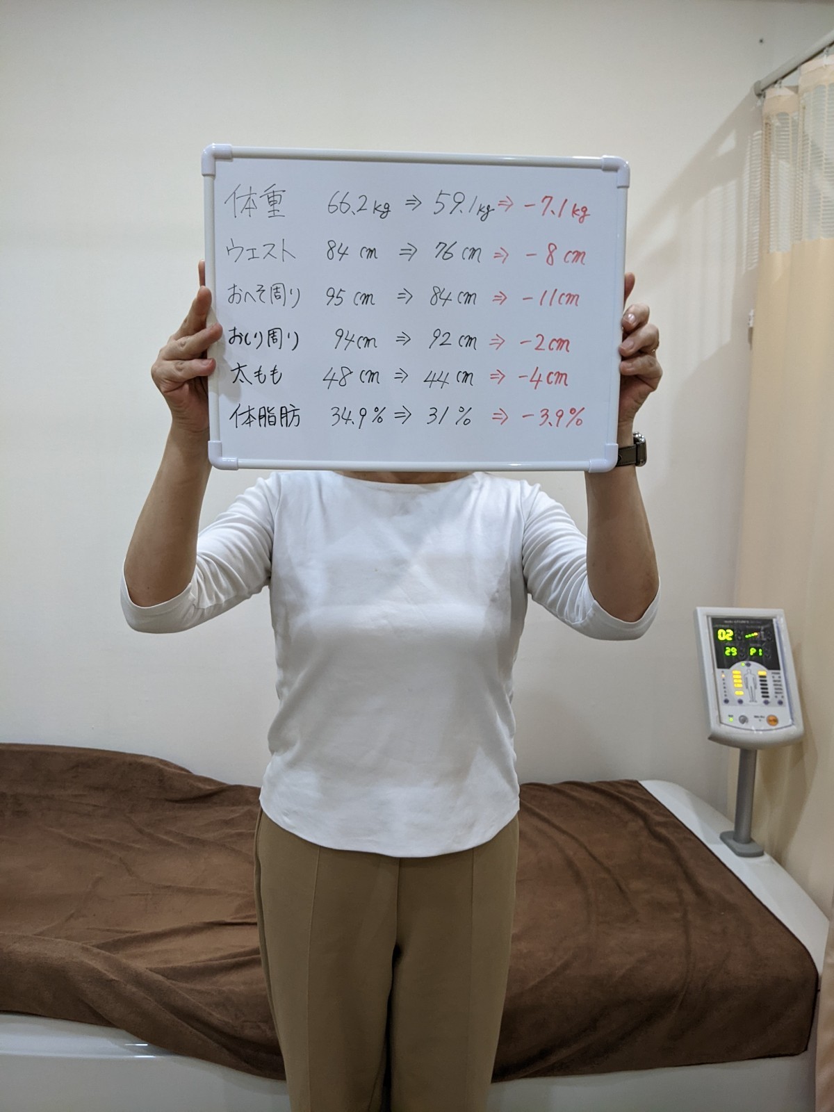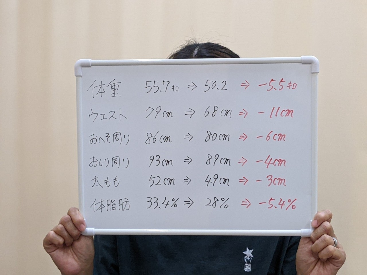 身体の変化は体重・むくみが減り、腹回りがすっきり。