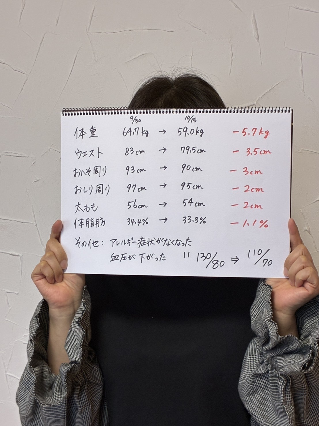 なかなか減らなかった体重は7キロ減 血圧正常値に!