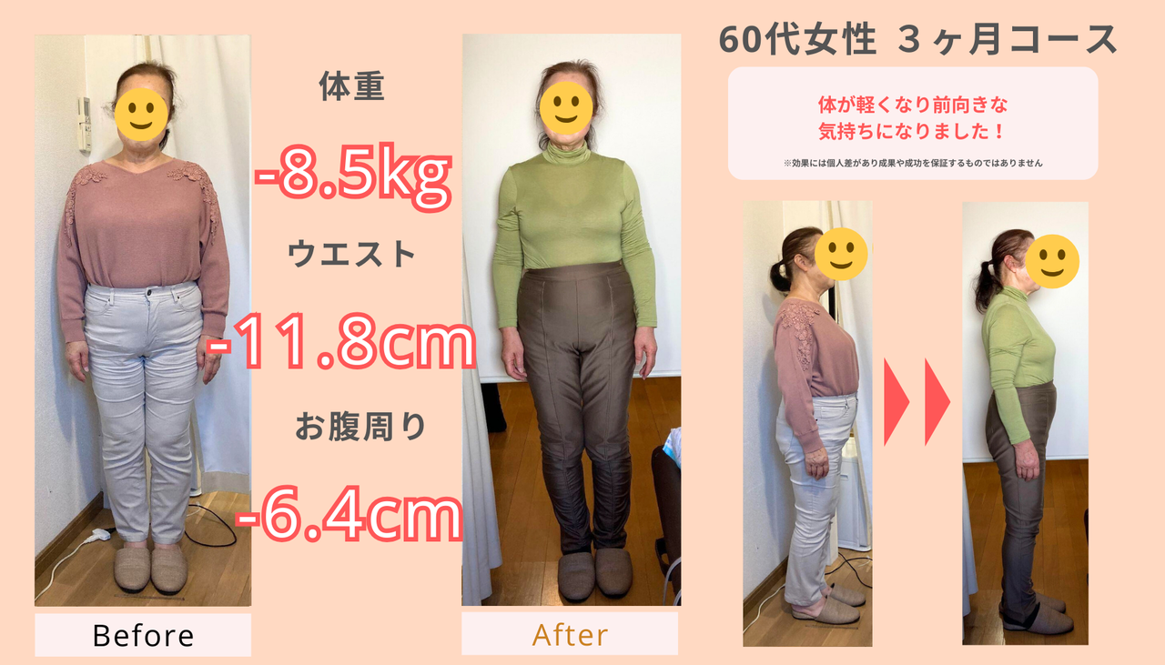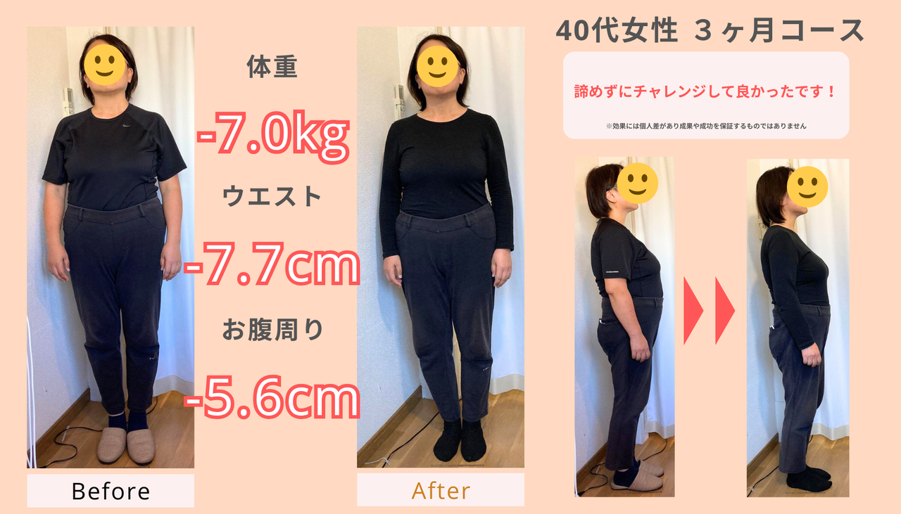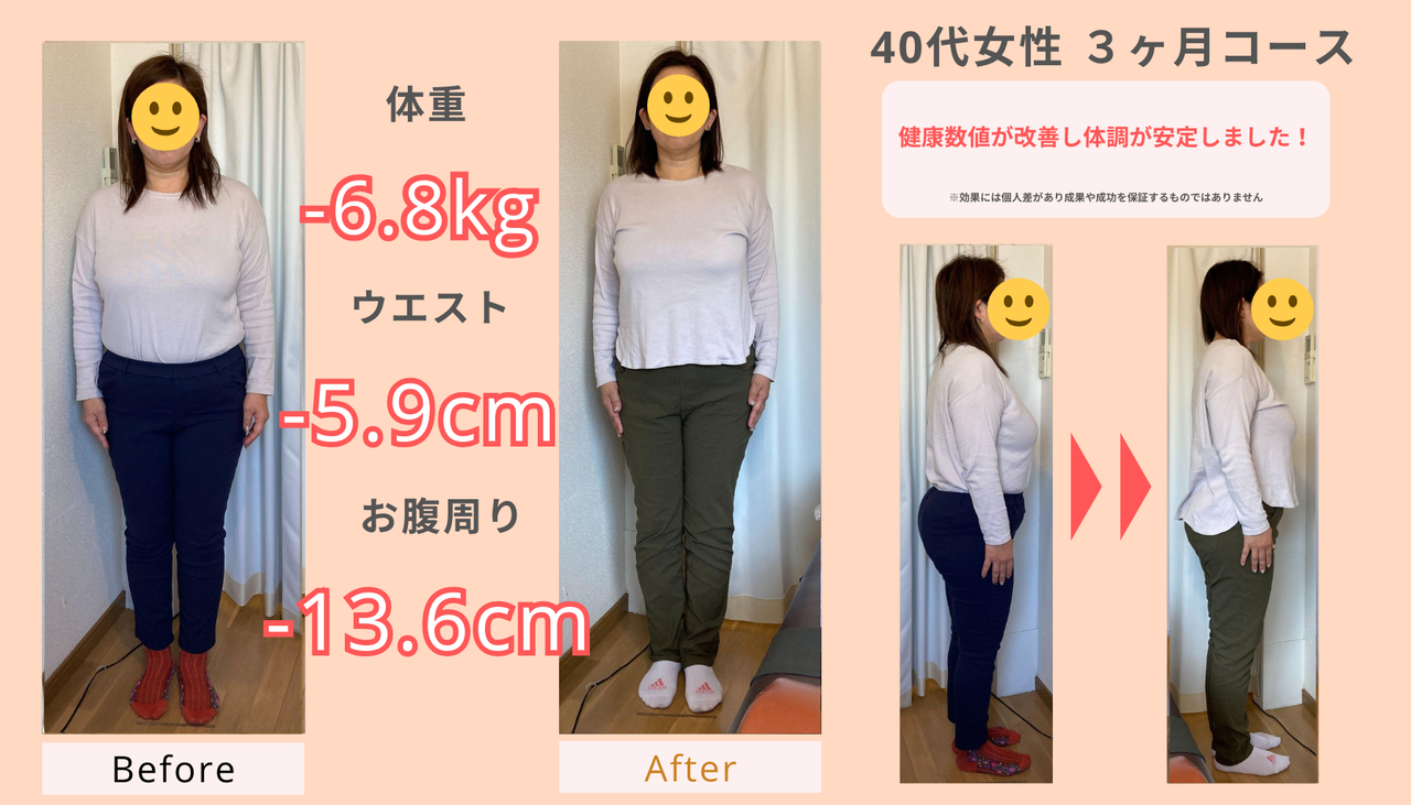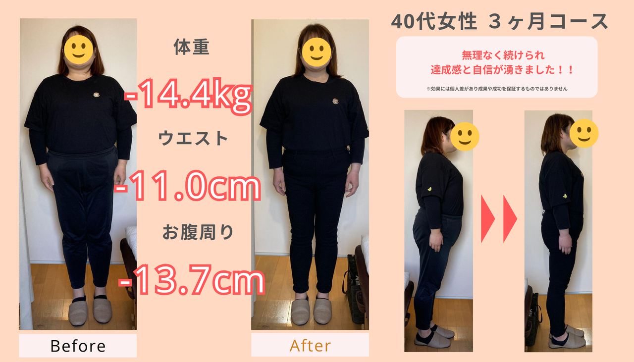 最高で14kgの減量を達成された方もいらっしゃいます。