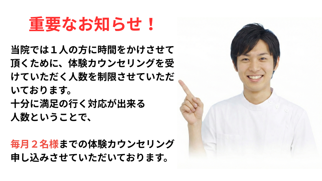 毎月の受付は【先着2名様】までとさせていただいております。
